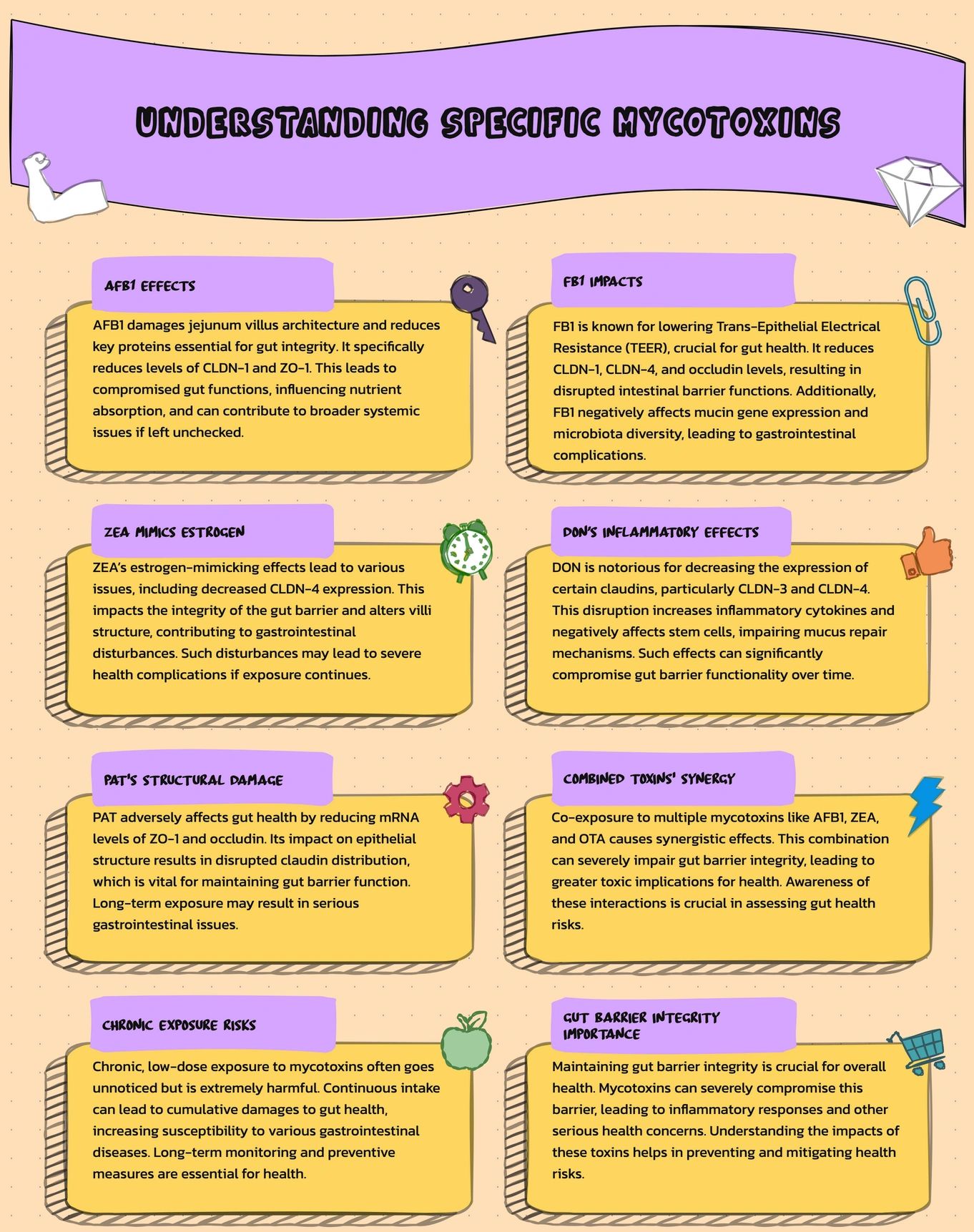 Each mycotoxin targets the gut differently, but the pattern is clear: